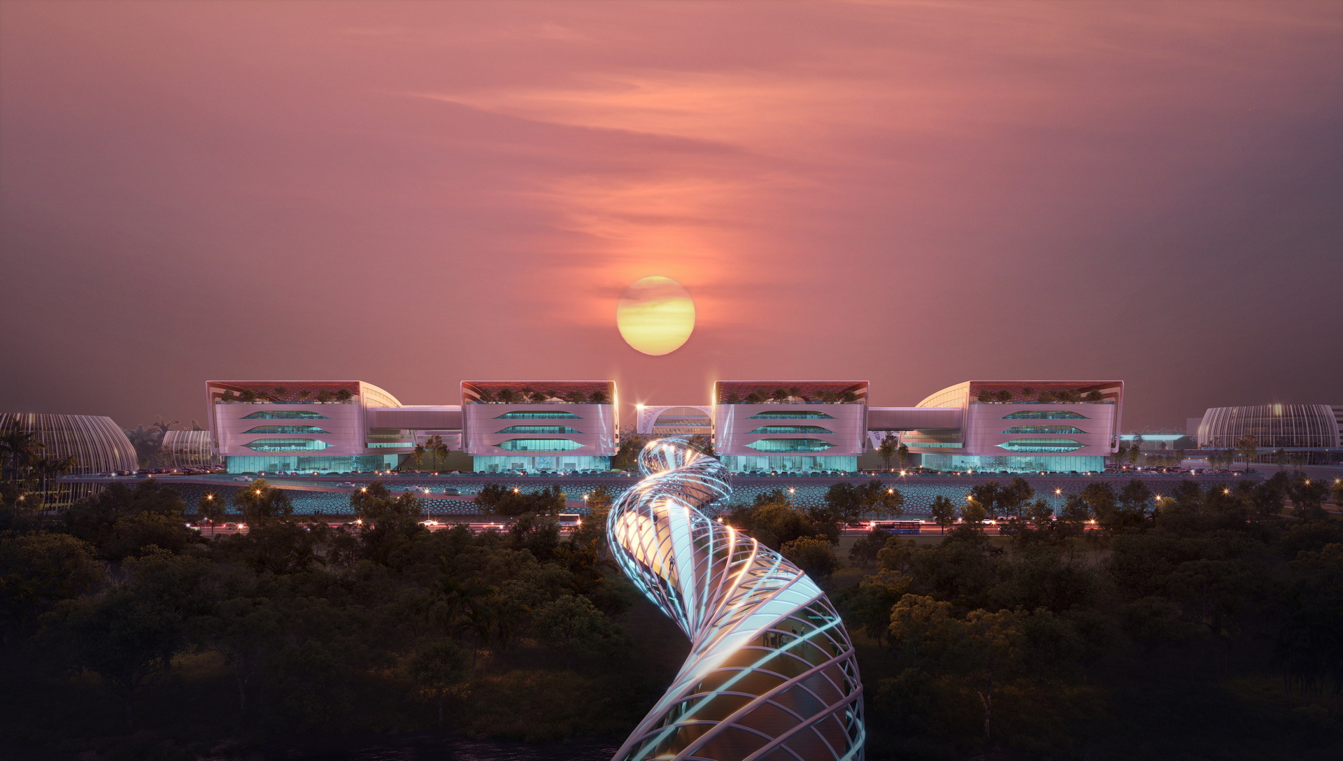 项目位于浙江温州龙湾二期北单元产业片区,依托城市污水厂用地而建,南邻高速出口、西接滨海公园,兼具区位与生态优势。项目首创“城市净水厂+智能制造产业园”复合开发模式,以“龙脊智谷”为核心理念,融合“龙”文化与未来科技,致力于打造高效复合、山水共生的产业新标杆。